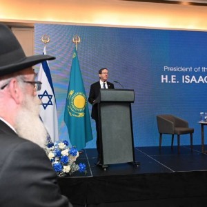 שליח הרבי בקזחסטן הרב ישעיה אלעזר כהן מלווה את נשיא המדינה יצחק (בוז'י) הרצוג המבקר בימים אלו בביקור בקזחסטן שם נפגש עם הנשיא המקומי (צילום: חיים צח/לע"מ)