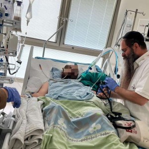 'בכל לבבך': הרב עמית פליישר משלוחי הרבי בבית הרפואה 'בילינסון' בפתח תקווה, בזיכוי המאושפזים בהנחת התפילין היומית