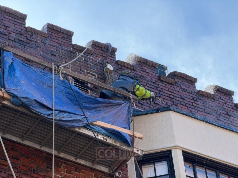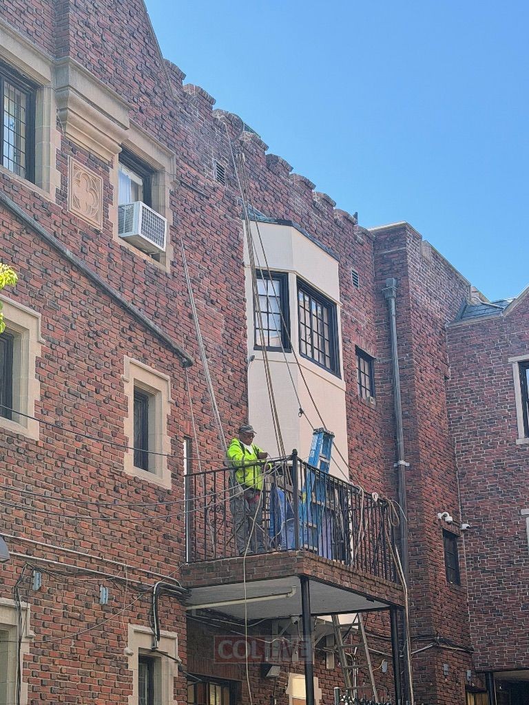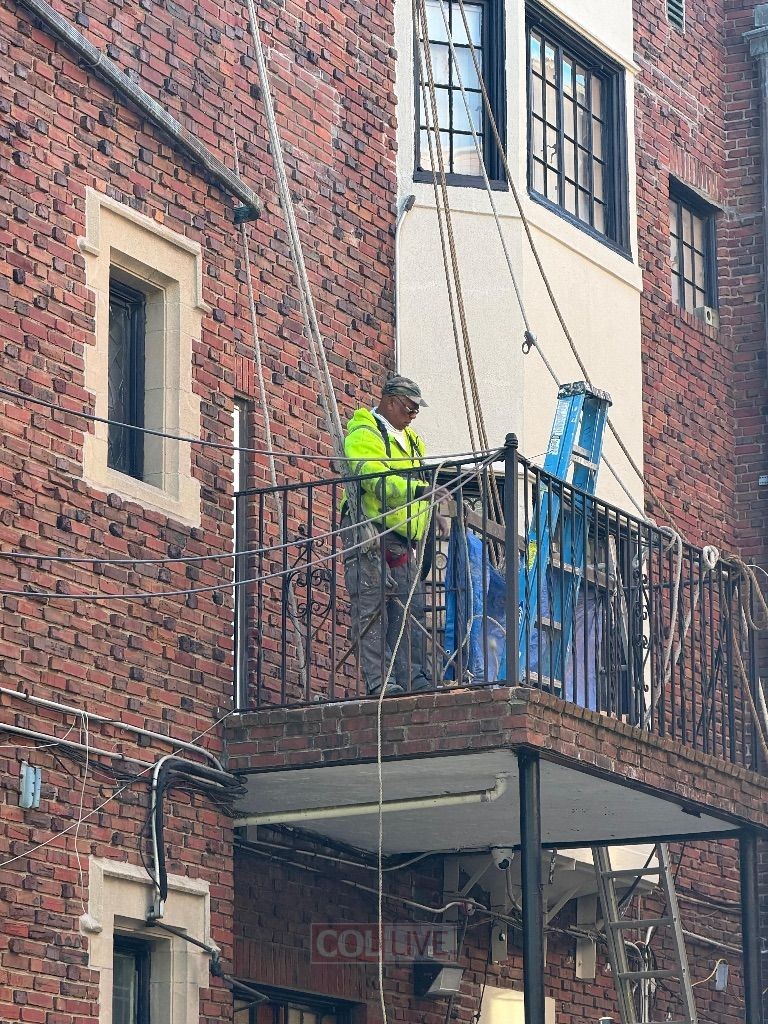 צוותי ניקיון ביצעו אתמול, יום שני, עבודות תחזוקה בחלקו החיצוני של בניין בית חיינו 770, כולל באזורים המחוברים לדירת הרבי הריי"צ בקומה העליונה | כך זה נראה מבחוץ