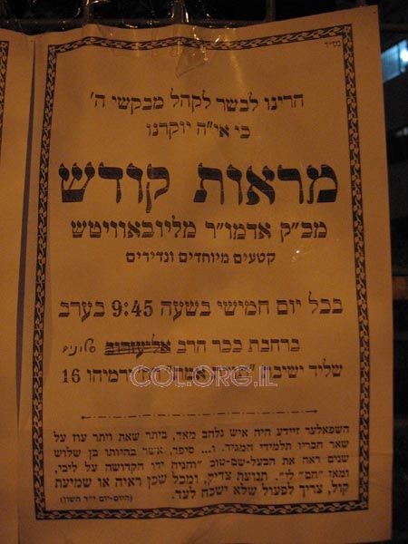החל מליל שישי זה החלו מספר בחורים מישיבת תורת אמת חב"ד בירושלים בהקרנת מראות קודש של הרבי. בהקרנה הראשונה שהתקיימה בשבוע זה השתתפו מאות בחורי ישיבות לצד אברכים בלבוש חסידי ובני תורה ליטאיים. המסך הענק הוצב בלב רחוב מרכזי סואן בירושלים, כשכל עוברי האורח עצרו לצפות בשיחות הרבי ובמראות המרתקים, כולל רבים שעצרו את רכביהם וירדו לצפות במראות הקודש. להמשך הכתבה