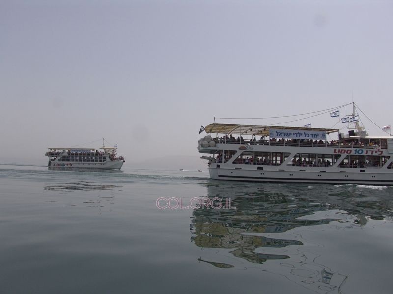 המוצגים שטים על רקע הספינה הגדולה בכינרת • צילומים: COL