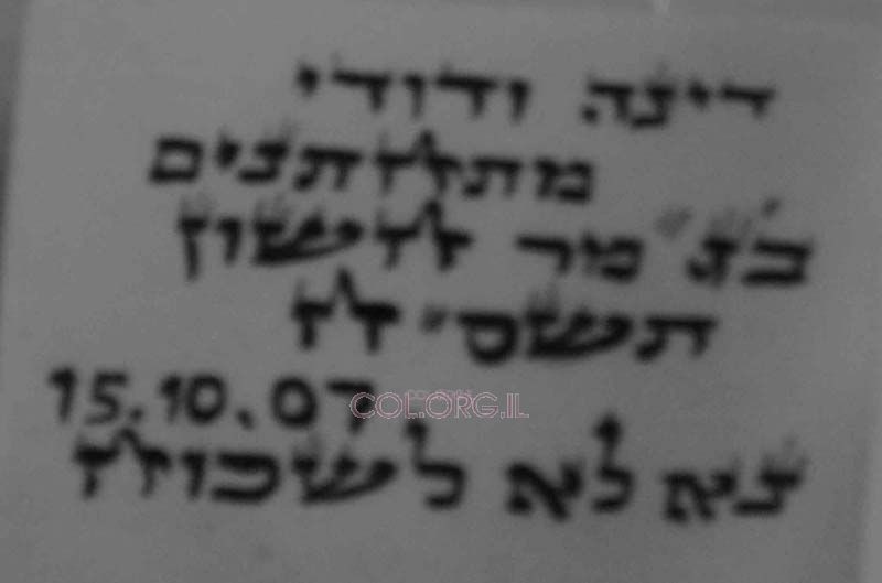כחודש לפני שהתגלתה מחלתו באה בקישרי השידוכין נכדתו והמנוח כתב על קלף באופן בלתי מוסבר את המילים הבאות, "דינה ודודי מתחתנים בג' מר חשון תשס"ח 15/10/07 נא לא לשכוח" ומסר את הקלף לזוגתו תחי' וביקשה להניח במקום שמור כחודש לאחר מכן השיב את נשמתו לבוראו.