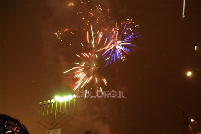 ותוך כדי סיקור של כל כלי התקשורת בעיר הודלקה החנוכיה תוך כדי מופע מרהיב של זיקוקי דינור וליווי מוזיקה חסידית שנשמעה ברקע ממשאית עם רמקולים גדולים. כל המשתתפים בהדלקת החנוכיה קיבלו סופגניה טעימה ומתוקה.