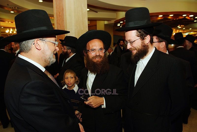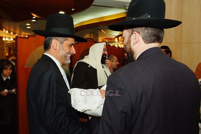 יו"ר ש"ס השר אלי ישי ושר התקשורת אריאל אטיאס הצהובים זה לזה, החזיקו ביחד את התינוק במעברים בין ה'חיקה', תחת עיניו הפקוחות של הרב הראשי הספרדי הרב שלמה עמאר, כשבתווך עוקבים אחריהם, עמיתיהם מהאופוזיציה, הח"כים מאיר פרוש ויעקב כהן. יו"ר צעירי אגודת חב"ד ואגודת-חסידי-חב"ד הרב יוסף יצחק אהרונוב לחץ בחמימות את ידו של ראש עיריית ירושלים הליטאי, אורי לופליאנסקי וסגניו יהושע פולק ואורי מקלב, ושניים מחברי בית הדין של רבני חב"ד בארה"ק, הרב מנחם מענדל גלוכובסקי והרב אברהם מיכאל הלפרין חלקו שולחן אחד עם יו"ר דגל התורה ח"כ הרב אברהם רביץ ויו"ר לב לאחים הרב מנחם כהן.