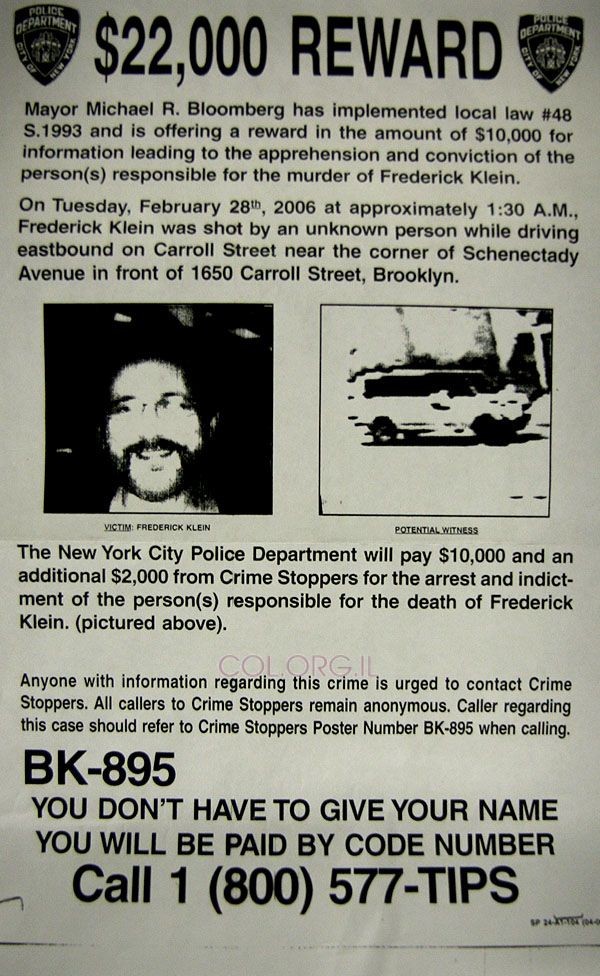 שנתיים לאחר הרצח של ר' אפריים קליין ע"ה, משטרת ניו-יורק מחדשת את החקירה, כך נודע ל-COL. בסוף-השבוע חילקו שוטרים פליירים ברחובות שכונת קראון-הייטס, הקוראים למי שיש בידו מידע על הרוצחים - לפנות לתחנת המשטרה. המוסר מידע יקבל 10,000 דולר ומי שיביא מידע ספציפי על מקום שהותו של הרוצח יקבל 20,000 דולר. כזכור, ר' אפרים שהיה בנסיעה ברכבו בשכונת קראון-הייטס בניו-יורק, נורה משלוש יריות והחל לאבד את השליטה על הרכב. הוא פגע במספר רכבים שחנו ברחוב, ומכוניתו החלה לעלות באש. מספר עוברי אורח הוציאו אותו מהרכב, והזעיקו את כוחות ההצלה. בדרך לבית-הרפואה הוא נפטר לתצלום המודעה● שנה לזכרו, והפושעים טרם נלכדו ● ראש עיריית ניו-יורק הביע תנחומיו ● ניו-יורק: 22,000 דולר ללוכד הרוצח ● כלי-התקשורת בארה"ב מדווחים על הרצח ● תושב שכונת קראון-הייטס נורה למוות ברכבו ● אלפים במסע ההלוויה של ר' אפרים קליין הי"ד