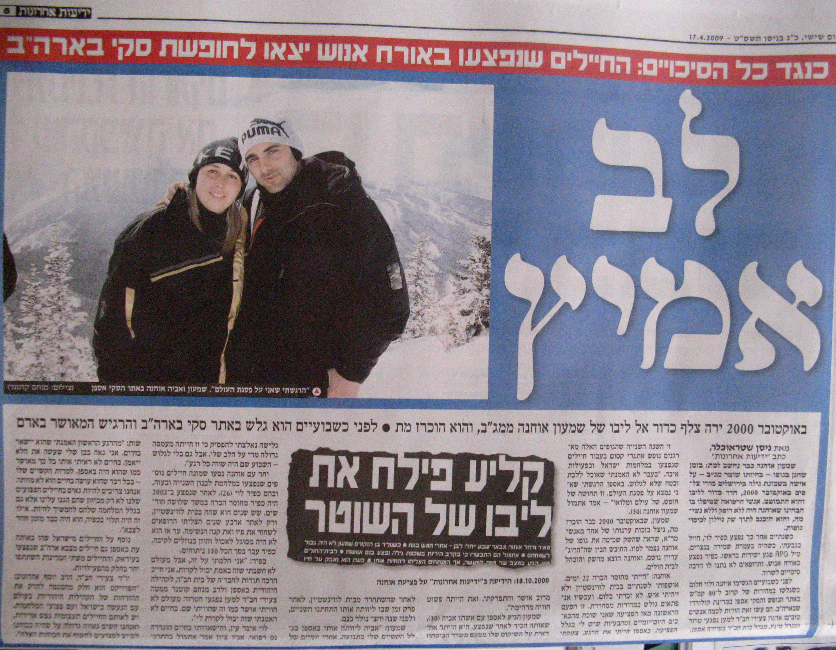 תחת הכותרת "לב אמיץ" מתפרסם היום (שישי) בעיתון 'ידיעות אחרונות' סיפורו של שמעון אוחנה, חייל מג"ב שנפגע מירי מחבל ונפצע אנוש. לפני כשבועיים הוא גלש באתר סקי בקולרדו שבארה"ב והרגיש המאושר באדם. "אוחנה וחבריו עשו זאת הודות לאירגון צעירי-חב"ד למען נפגעי הטרור והרב מענדל מינץ מנהל בית חב"ד בעירייה אספן", נכתב בכתבה. יו"ר צעירי-חב"ד הרב יוסף יצחק אהרונוב אמר ל'ידיעות אחרונות' כי "הפרוייקט הוא חלק מהמגמה להדק את ההזדהות של הקהילות היהודיות בעולם עם הנעשה בישראל ועם פצועי המלחמות" לצילום הכתבה ● מצוייני צה"ל חזרו נרגשים מהסקי באספן ● תמונות