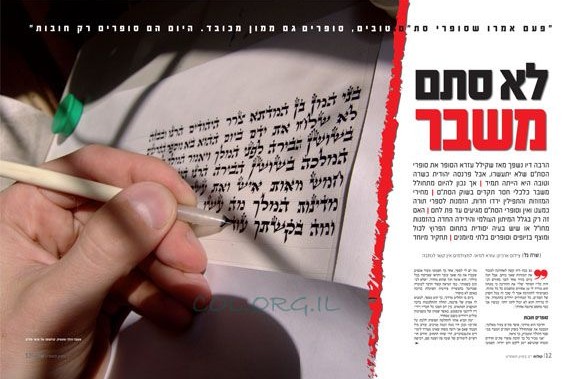 לגבי מזוזות ותפילין השוק יחסית יציב, אך זה נכון שבכל הקשור לספרי תורה יש פשוט עצירה כמעט מוחלטת. לא שמעתי על כאלו שרעבים ללחם, תמיד אפשר לשלב את הכתיבה בעבודה נוספת ולהפוך אותה לעבודה צדדית, אבל ירידה יש בהחלט. ואולי זה מה שטוב במקצוע הזה – האפשרות לשלב אותו עם מקצועות אחרים, שהרי מדובר בעבודה הנעשית בכל שעה ביום בביתך הפרטי".
