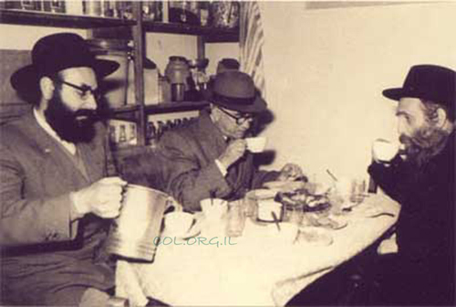 (משמאל) הרב אפרים וולף ע"ה סועד בחדר-האוכל בישיבה.