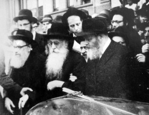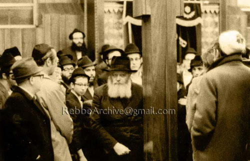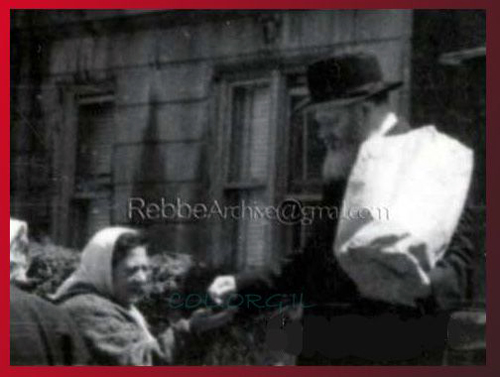 תמונה מיוחדת של הרבי שצולמה בשמת תשכ"ד בה נראה הרבי נותן צדקה לאישה יהודייה