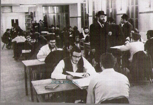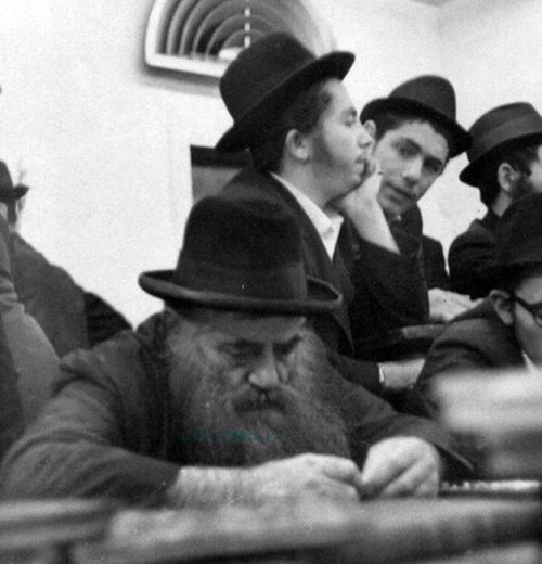 תמונה שצולמה בשנת תש"ל בזאל הקטן ב-770. אחד המצולמים, מככב בתקופה זו באתרי הכלכלה. מזהים? בואו להגיב