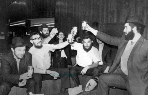 שמואל בן צבי שתיעד את שנת תש"ל בחצרות-קודשינו, מגיש תמונה של קבוצת בחורים אומרים 'לחיים' על פחיות שתיה. לא ברור איזה פחיות מדובר ועל מה הייתה החגיגה. תלמידי ה'קבוצה' דאז שחזרו את המחזה. לתגובות