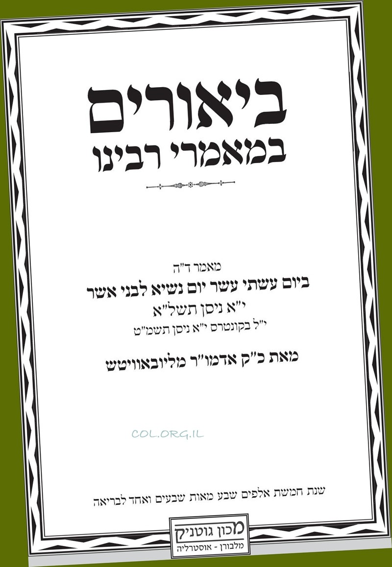 לרגל י"א ניסן: מאמר מבואר ד"ה "ביום עשתי עשר יום"