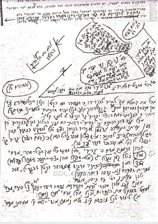 בחלק העליון של העמוד המצורף נוספה הערה בעת ההגהה – שמוספרה אז בתור "30*", ובספר 'לקוטי שיחות' שלפנינו היא במספר "32" - ומעניין לראות את השימוש בחצים ובכוכביות על מנת להפנות מקטע לקטע, תוך כדי ניצול מירבי של שטח העמוד.