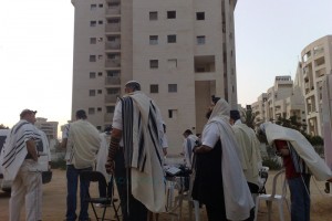 לידי COL הגיעה תמונה מתפילת שחרית בבית-חב"ד קרית-אילון בחולון. בשכונה החדשה אין עדיין בית-כנסת, ובית-חב"ד בראשות הרב מנחם שטיינברגר מקיים את התפילות לרווחת התושבים ברחבה שעל-יד 'טנ... לסיפור המלא