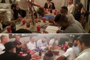 "ואני אבטח בך": שלוחי הרבי בעתלית - הרב משה ודוד אקסלרוד, מפזזים עם רב העיר - הרב שמעון אלמליח, בהתוועדות י"ט כסלו שנערכה ע"י הבית חב"ד. עוד נצפה: הרב שי פרי - ראש מוסדות 'החיים לדוד" שבחיפה